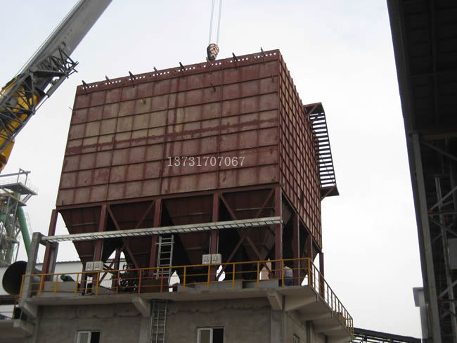 35T鍋爐除塵器整體就位成功,進入下面的工作,除塵器內部濾袋及骨架的安裝。