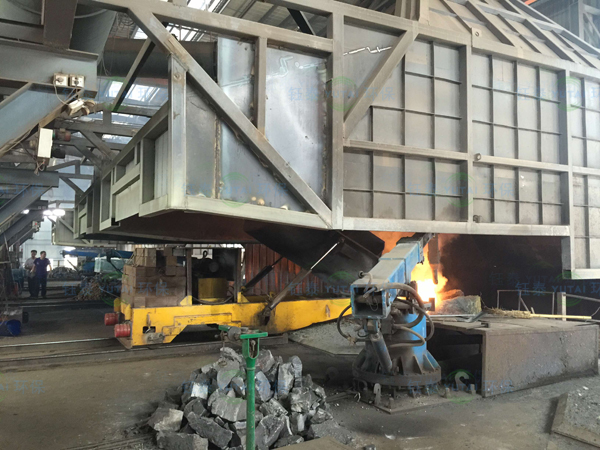 中頻爐冶煉煙氣除塵采用移動式半密閉的集煙形式,輔以液壓加料車加料、鋼包車出鋼,可實現煙氣在加料期、冶煉期、出鋼期全過程捕集。加料車的使用提高了加料作業效率,減少了人工操作。鋼包車的使用除滿足環保除塵效果外,降低了漏鋼穿爐等出鋼事故發生的概率,使中頻爐出鋼更為安全。