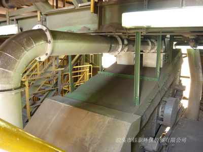 鐵礦干選車間皮帶輸送機、破碎機、振動篩除塵系統管道安裝完畢,粉塵控制和收集效果很好。