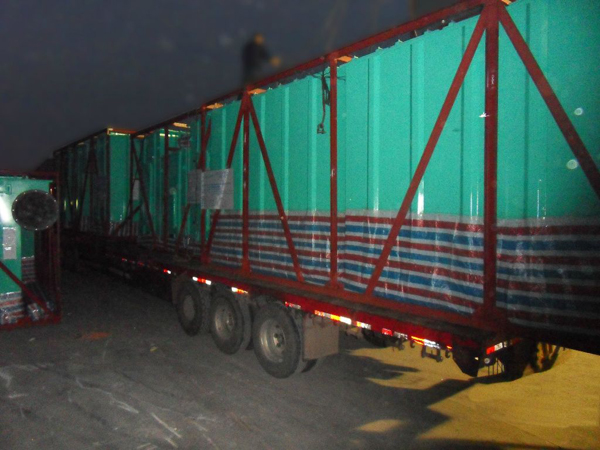浙江寧波北倫電廠粉煤灰處理用PPC96-8布袋除塵器運抵現場,正在卸車。