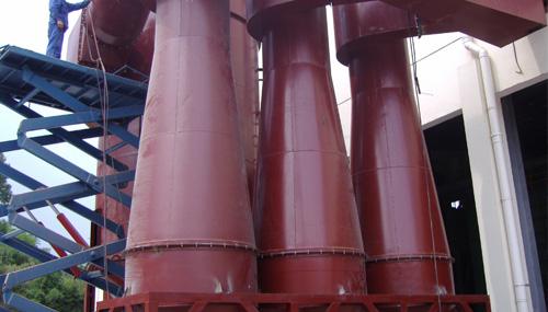 CLK擴散式旋風除塵器,適用于捕集干燥的非纖維性的顆粒狀粉塵,主要特點是筒身呈圓錐形,因而減少了含塵氣體自筒身中心短路到出口去的可能性,并裝有圓錐形的反射屏,防止兩次氣流將已經分離下來的粉塵重新卷起,被上升氣流帶出,因而提高了除塵效率。