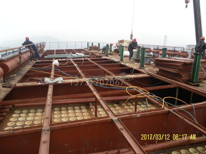 5、噴吹管安裝,嚴(yán)格按圖紙進(jìn)行,保證其與花板間的距離,保證噴管上各噴嘴中心與花板孔中心一致,其偏差小于2cm。
