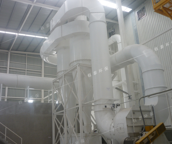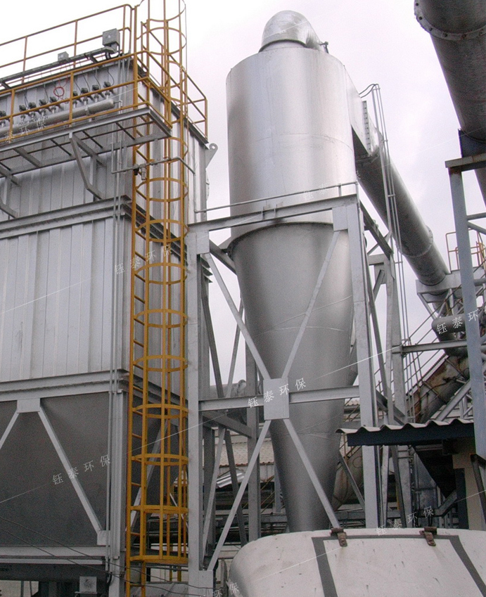 工業旋風除塵器又稱旋風過濾除塵器,主要用于去除廢氣中密度較大的非纖維性、非粘性顆粒。可捕集粒徑大于5μm的粉塵,除塵效率50%~90%。因此,通常采用旋風除塵器作為廢氣送入主除塵器收集細粉塵之前的初級收集器或預過濾器。由于旋風除塵器殼體內部幾乎沒有