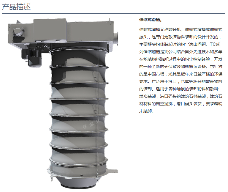 3.外套筒用于控制揚起的灰塵,以防止在裝貨時向大氣中揚起灰塵。